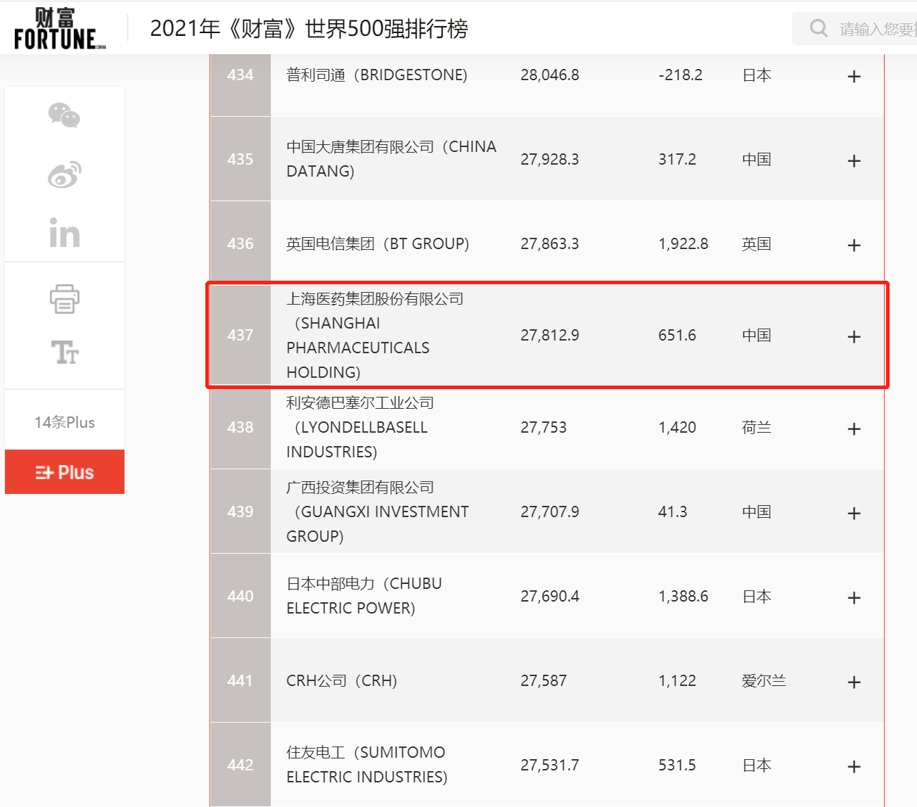 排名上升36位至第437,上海醫(yī)藥再登《財富》世界500強榜單!